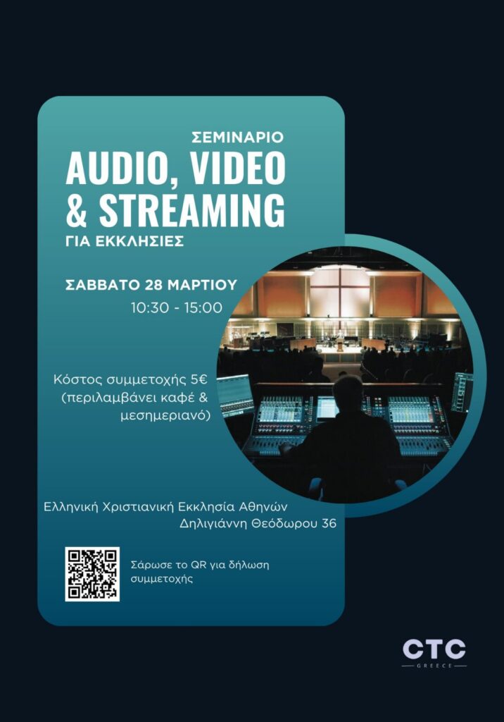 Σας προσκαλούμε σε ένα εκπαιδευτικό σεμινάριο σχετικά με τις διακονίες Ήχου, Εικόνας και Livestream.
