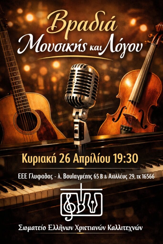 (Λ. Βουλιαγμένης 65Β & Αχιλλέως 29, ΤΚ 16566) για μια βραδιά αφιερωμένη στην τέχνη, την έκφραση και το μήνυμα της πίστης μέσα από τη μουσική και τον λόγο.